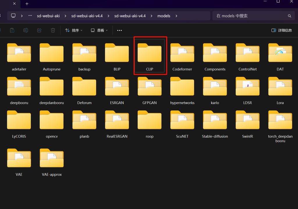 升级完成后,我们在绘世启动器的根目录下找到models文件夹,在该文件夹内新建一个文件夹取名为CLIP,一会所有的CLIP模型都要放在该文件夹内。