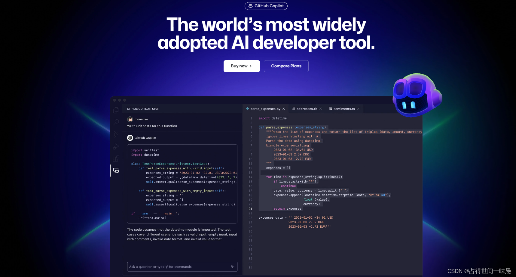 这是GitHub Copilot的官网链接,大家可以去官网了解最新资讯。
