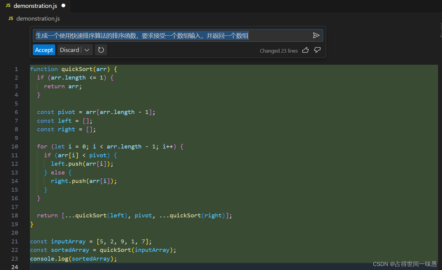 它将会为你生成的代码,你可以选择接受或拒绝,也可以刷新或再次提问。