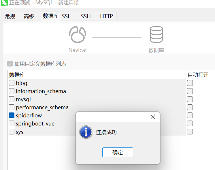 解决办法:新建MySQL连接,在数据库中使用自定义数据库列表