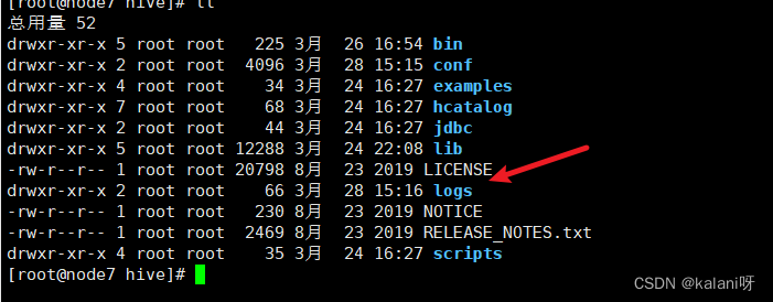 3. ⽤hive-script.sh restart重启服务后,查看/export/server/hive/logs⽬录 ,已生成新的日志。