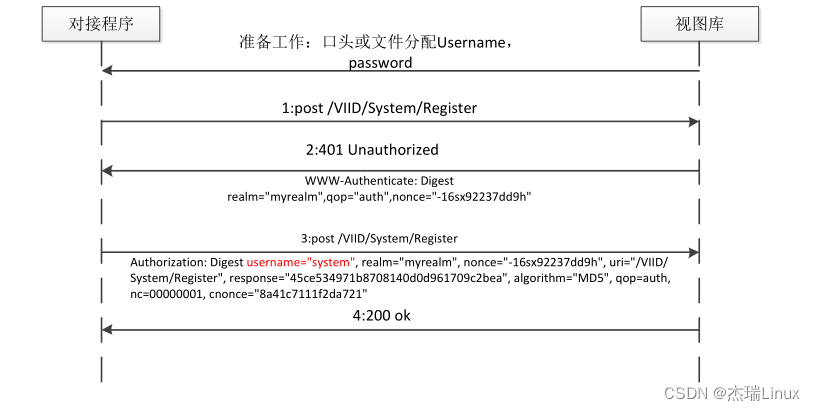 3.三方根据视图库响应的WWW-Authenticate信息进行RFC2617 digest(下文)加密生成秘钥放入请求头Authorization中,重新发送请求