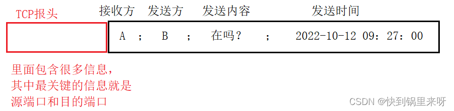 前面报头TCP报头中的源端口和目的端口,就相当于发件人姓名和收件人姓名