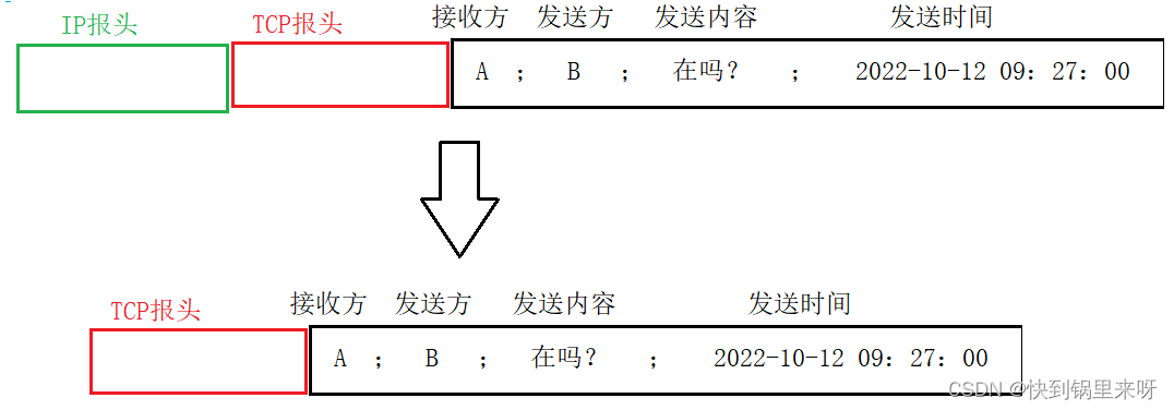 微信应用程序,就会把应用层数据报再进行解析,取出里面的信息显示给接收方的界面上