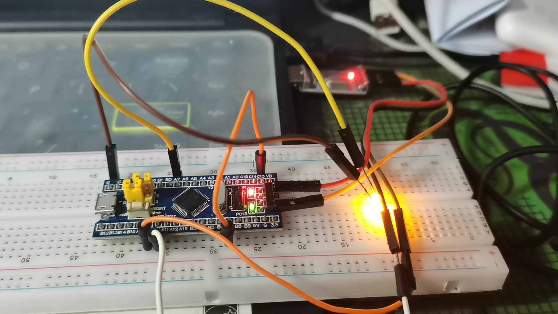STM32输出PWM波形 使用TIM3和TIM4,分别输出一个PWM波形,PWM的占空比随时间变化,去驱动你外接的一个LED以及最小开发板上已焊接的LED(固定接在 PC13 GPIO端口),实现2个 LED呼吸灯的效果。