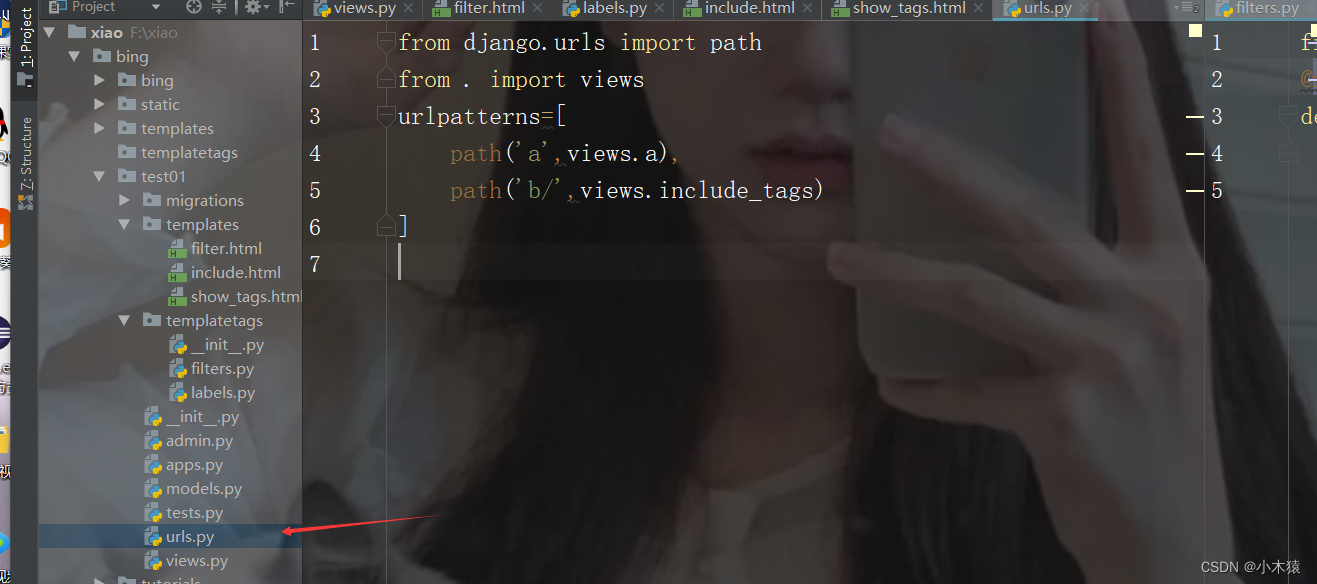 3.在新建的test01文件下创建urls.py(此处名称可变但注意上图)