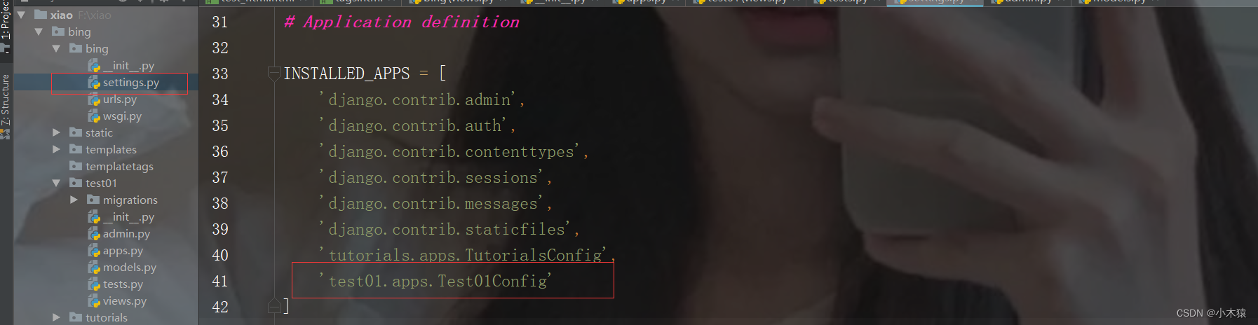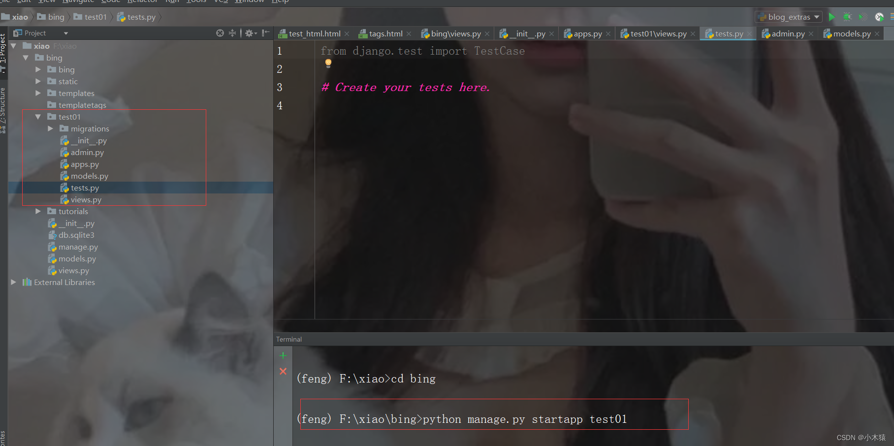 1.创建子应用:python manage.py startapp test01