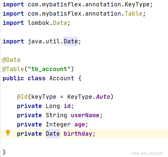 - 使用 @Table("tb_account") 设置实体类与表名的映射关系