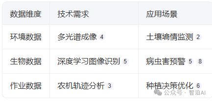 在农业领域应用AI大模型面临的核心挑战聚焦于多模态数据的高效采集与智能化处理。具体表现为: