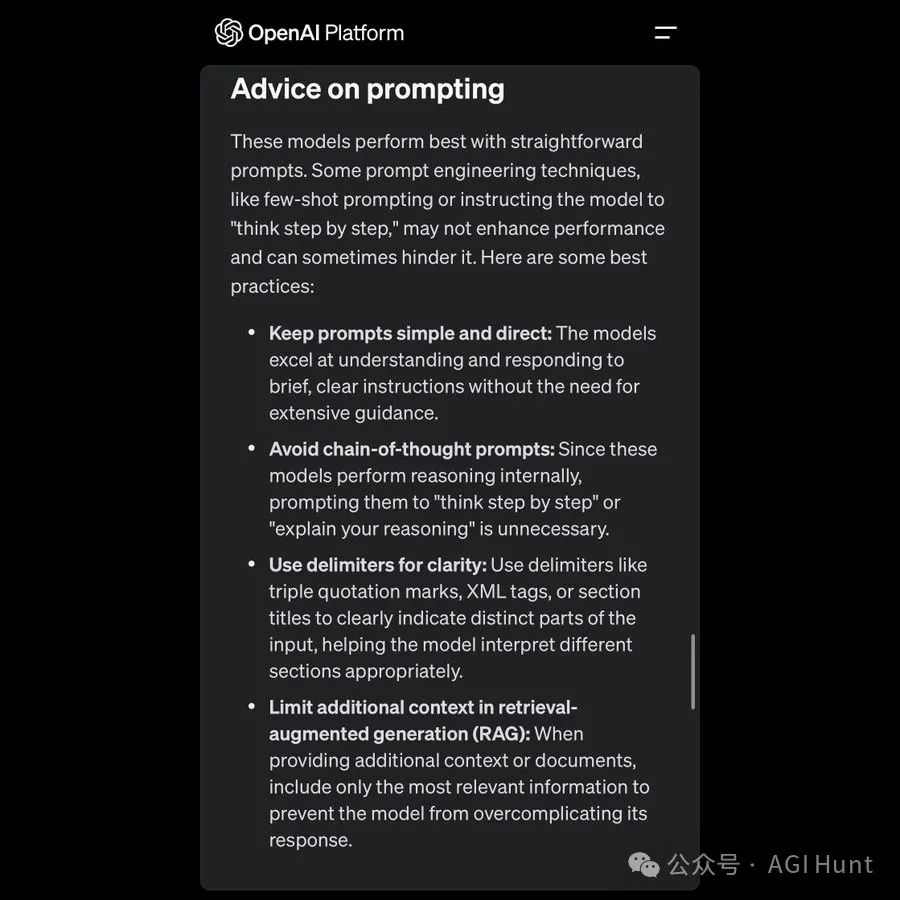OpenAI 官方文档直接说了:以前那套提示词技巧,在 o1 上可能不仅没用,还可能会适得其反。