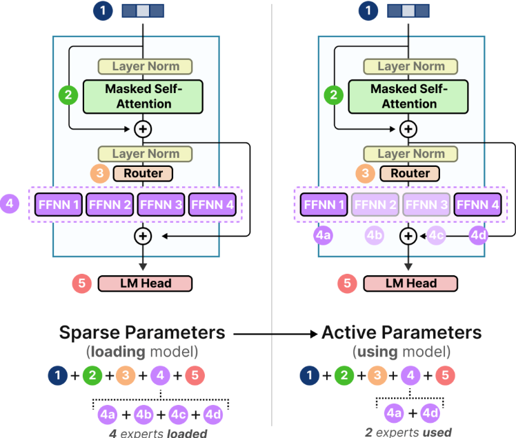 根据输入数据的特点,模型动态决定是否激活某些专家。对于一些输入数据不太重要的任务,模型可以选择跳过某些专家的计算,这样就能节省不必要的计算资源。 - 提高推理速度: