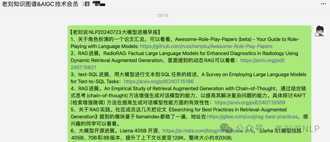 昨日主要动态主要围绕RAG、text-SQL、Llama 3.1模型开源等几个方面的内容。