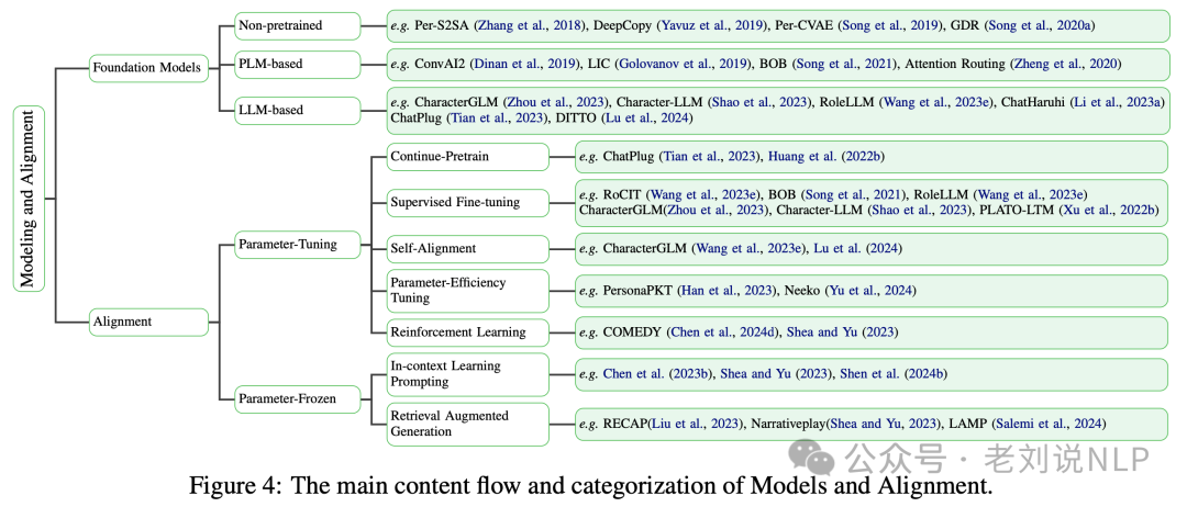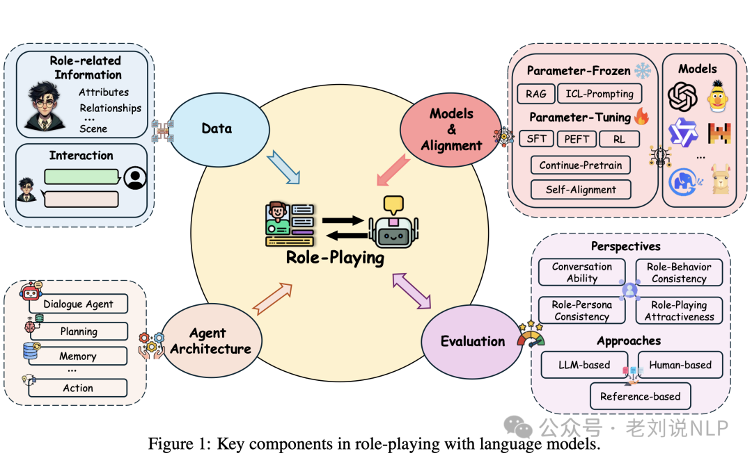该工作介绍了角色扮演语言代理(RPLAs)的架构,包括记忆、规划和行动等关键模块,并回顾了角色扮演的基础模型,包括非预训练模型、基于PLM的模型和基于LLM的模型。