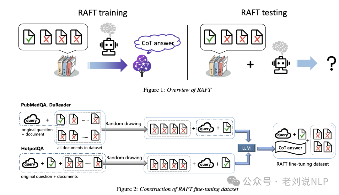 An Empirical Study of Retrieval Augmented Generation with Chain-of-Thought,通过结合链式思考(chain-of-thought)方法增强生成对话模型的能力,描述了RAFT微调(RAFT Finetuning)的过程,包括如何结合检索增强生成(RAG)和监督式微调(SFT),以及如何使用思维链风格的回答作为目标文本来提高模型的推理能力。