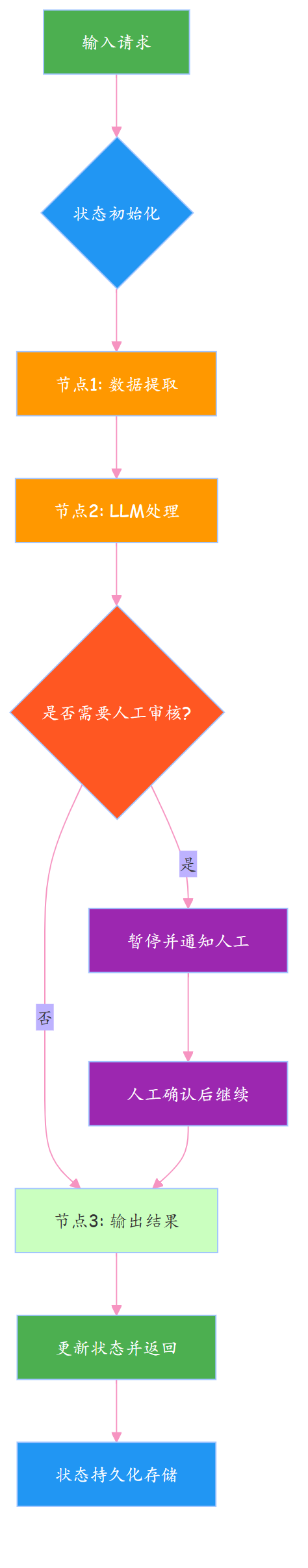 解决思路: 以“状态图”为核心,靠 节点、边、状态 三件套,构建可控可溯的工作流。