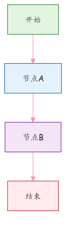 上面这段代码就是一个最简单的流程图:A → B → 结束。
