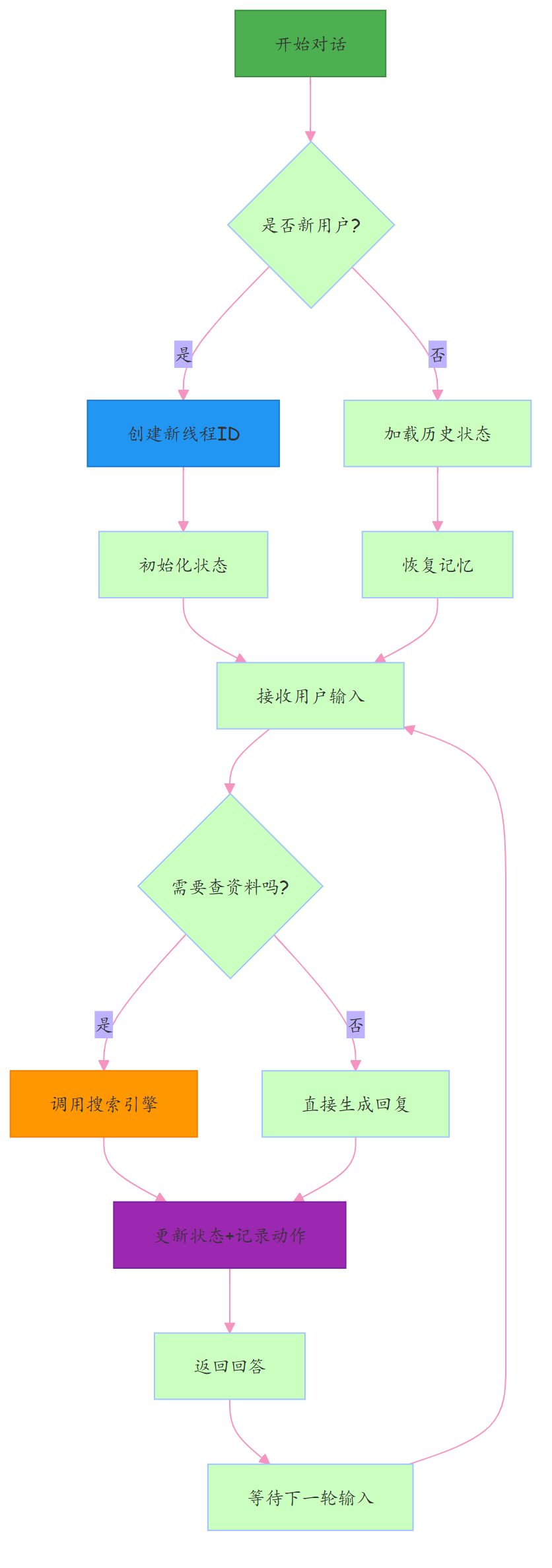 你可以把它想象成一个会记住上下文、能持续反应、还会自己做决定的智能机器人,而不是一个“问一句答一句”的问答机。