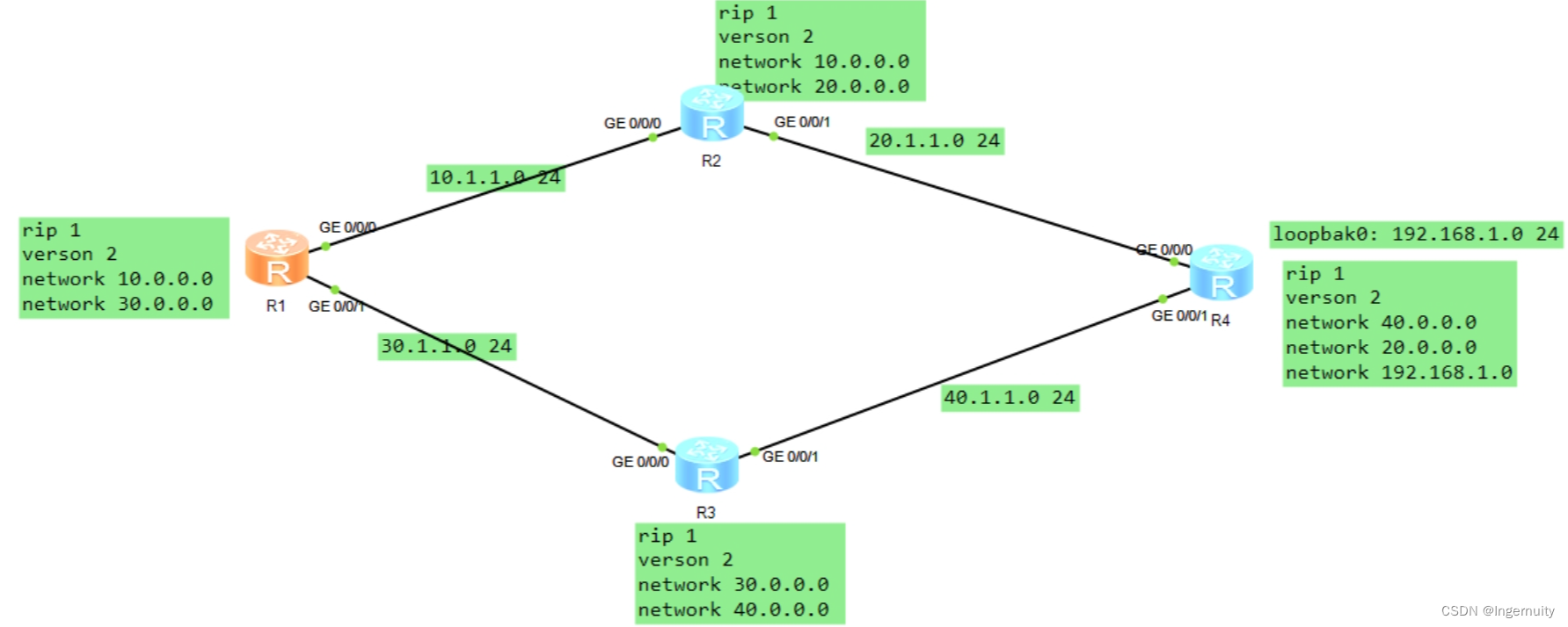 动态路由协议——————————RIP(原理+实验) 笔记: 链接:https://pan.baidu.com/s/1CKKdQx4okxeZqRJfcYdmNw。拓扑实验: 链接:https://pan.baidu.com/s/15GvS5JKSgqdJ8-48dpid9A。(2)缺省(默认)情况下,直连网络的路由跳数为0,当路由器发送路由更新时,会将度量值加1。(4)支持以广播或者组播(224.0.0.9)方式发送报文。(3)不支持VLSM,CIDR。(1)支持明文认证和MD5认证。(3)支持VLSM,CIDR。