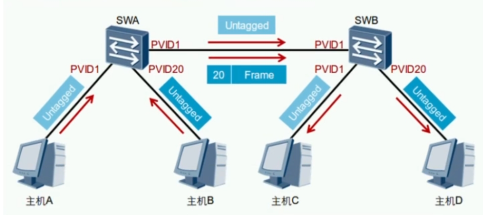 VLAN基础讲解+不同VLAN间通信(实验) 收到数据后添加VLAN Tag,VLAN ID和端口的PVID相同;注意:终端设备(PC)发出和接收的都是未打标签的帧,否则无法识别;允许多个VLAN的帧通过,并可以在出接口方向将某些VLAN帧的T剥离掉(由命令决定);图例:主机AC属于一个VLAN,B属于另一个VLAN,A与C相互通讯的演示。通过在交换机上配置VLAN,可以实现同一个VLAN内的用户可以进行。用户无法根据业务需要灵活的在交换机上进行广播域的隔离;VLAN技术提供了一种灵活的解决方案;收到帧时:如果该帧不包含Tag,将打上端口的PVID;