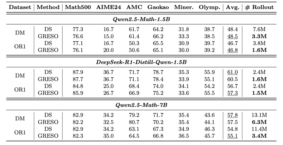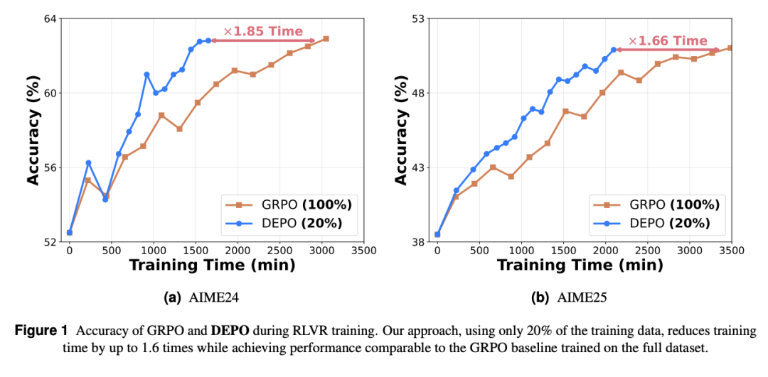 实验结果表明,本文章的方法仅用20%的数据能逼近全量训练性能,并且训练时间缩短40%,rollout数量减少60%。