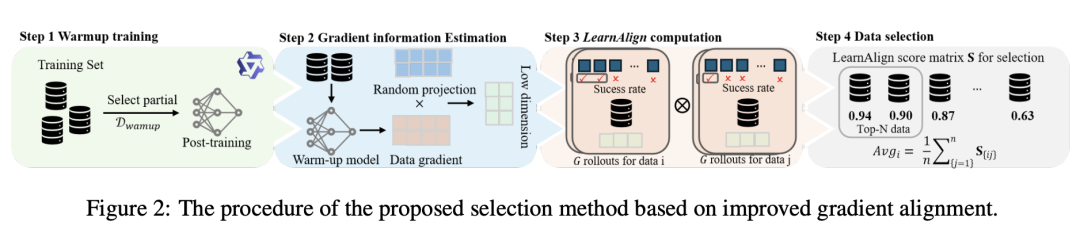Learnalign分数:结合数据可学性和梯度对齐,计算LearnAlign分数,用于评估数据点之间的相似性和可学性。
