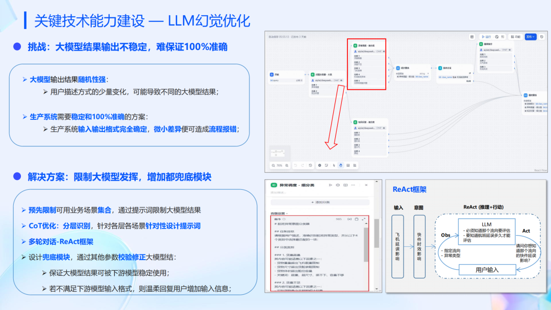 - CoT+角色化:采用思维链(CoT)技术,引导大模型进行逐步推理,并为其设置角色提示词(如“你是一个专业的物流调度员”),以确保其输出更符合业务场景。