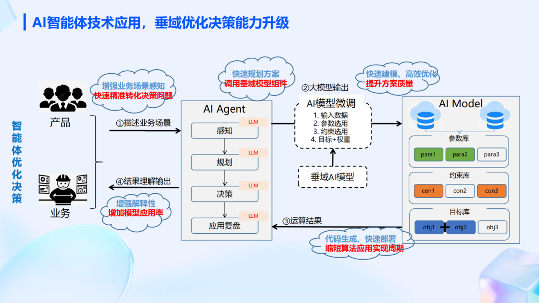 - 解释与维护:AI智能体能够解释其决策的依据,让用户理解方案的合理性。同时,它还具备即时维护能力,在发现问题或情况变化时,能够快速生成新的、更优的解决方案。