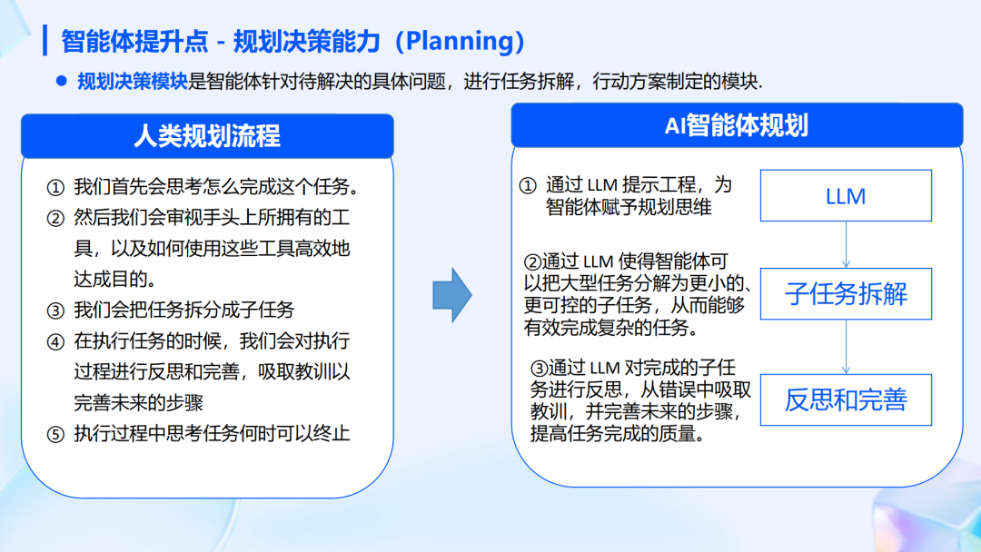 AI智能体正从简单的执行工具,进化为具备规划和决策能力的智能大脑。这一核心能力被称为Planning,它让AI智能体能够像人类一样,针对待解决的具体问题,进行任务拆解和行动方案制定。