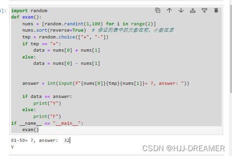 answer = int(input(f"{nums[0]}{tmp}{nums[1]}= ?, answer: "))