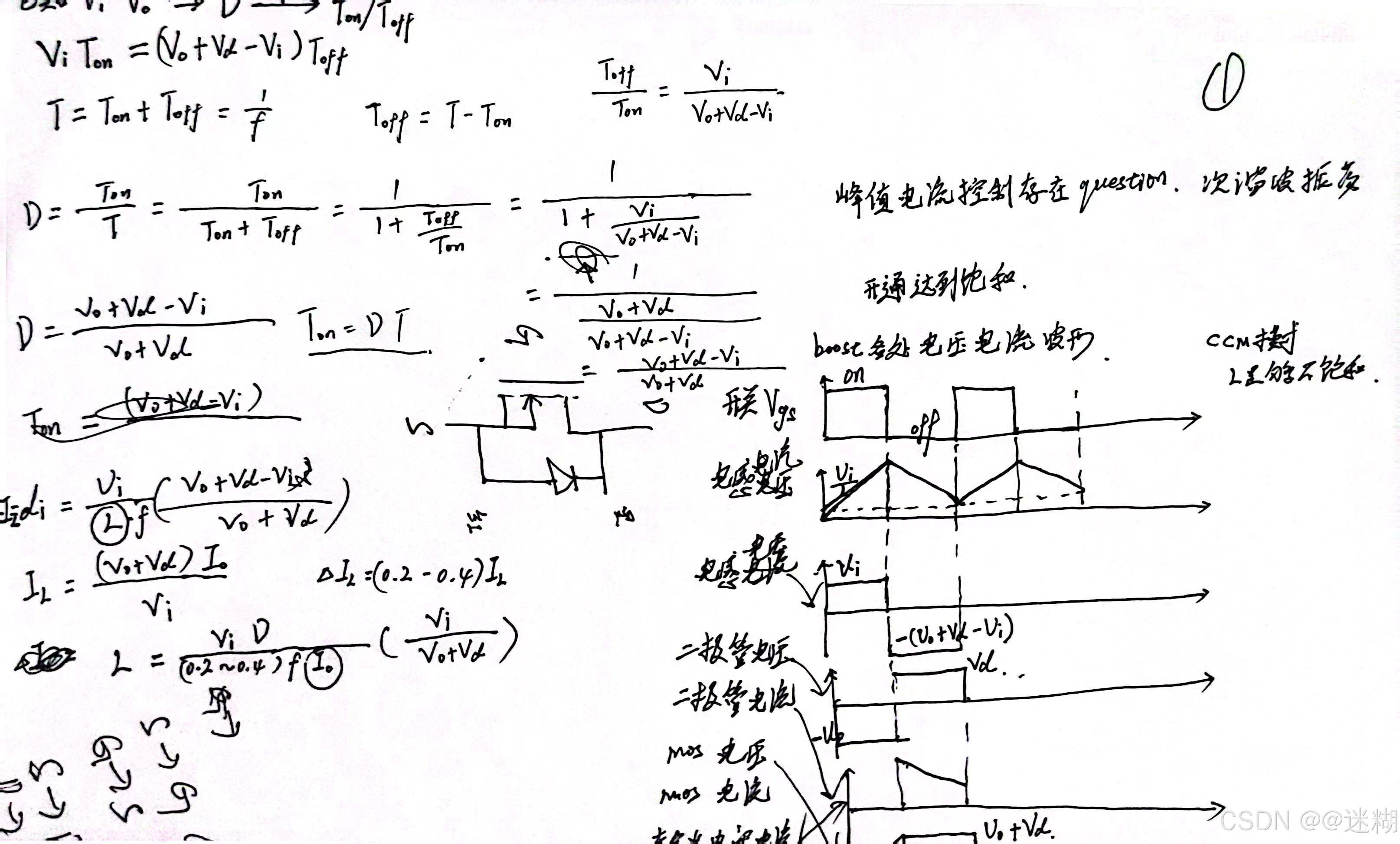 反激肖特基整流二级管及输出滤波电容的设计 直接调试更加快捷,首先确定吸收电容的容量,用示波器测肖特基两端,得到他的一个电压波形,然后在肖特基两端并联一个电容,直至这个波形的震荡周期变为没加之前的两倍,这个电容值就是最大的电容容量,接着在这个电容上串多一个电阻,直至电阻发热量最大,即过流最大的时候,说明这个电阻跟这个电容是最匹配的。最佳的一组电容跟电阻值满足以下几个条件,电阻发热量最大,输出效率最高,波形尖峰最低。其中Vor = (Vo + Vf)*(Np/Ns)2 电流计算: Id >= 4Io,Id为峰值电流。肖特基上面的吸收电路的计算。