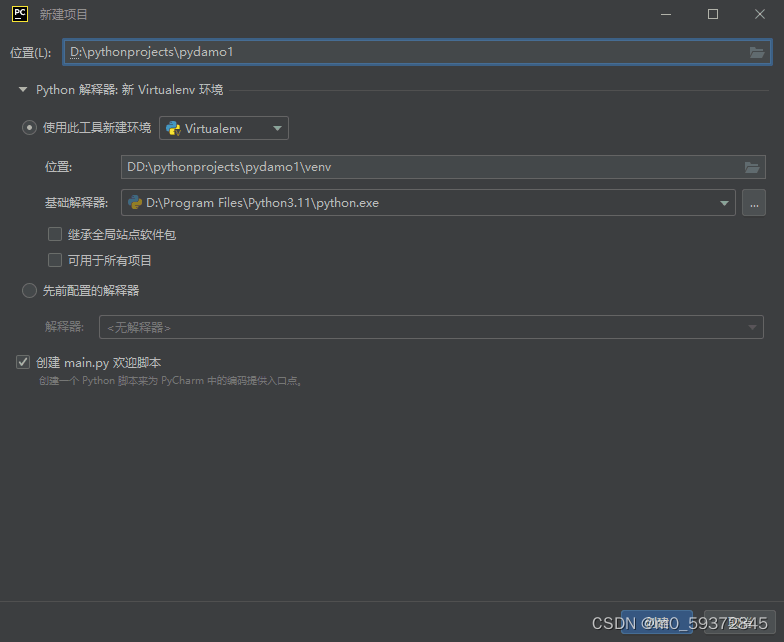 ⒉新建demo2使用python311克隆的虚拟环境