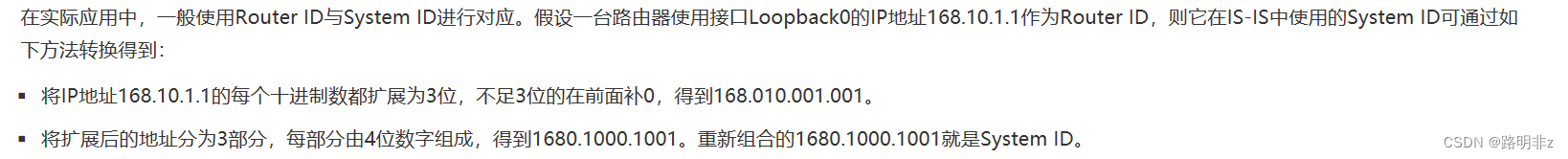OSPF协议对路由器的定位:Area ID + Route ID ISIS协议对路由器的定位:Area ID + Systemd ID + 00 = NET地址(网络实体标识符)