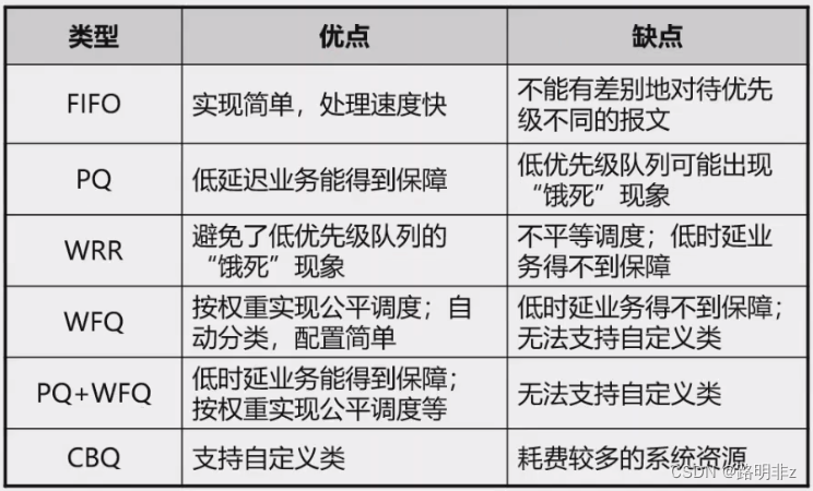 FIFO(First IN First OUT),实现机制简单且处理速度快,但不能有差别地对待优先级不同地报文