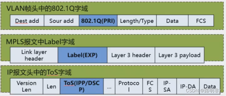 802.1Q、Label(EXP)、这两个都是3个比特,取值0-7