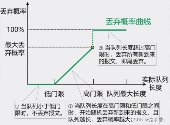 尾丢弃:后续将该队列发送的报文全部丢弃,直至拥塞解除