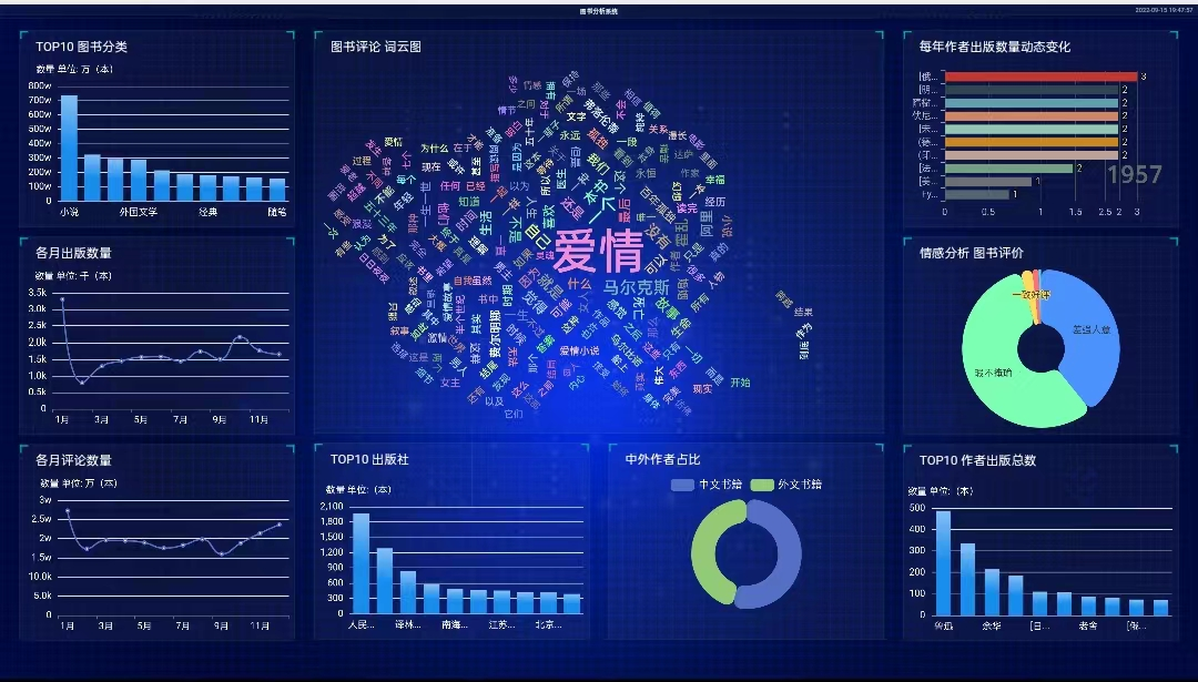 今天给大家分享的是基于 Flask、Echarts、Pandas 等实现的图书分析大屏展示系统。