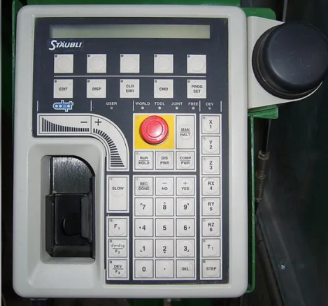 示教器编程是工业机器人中广泛采用的一种编程方法。示教器是一种手持式设备,操作人员可在车间现场直接控制和编程机器人。示教器通常配备用户友好的界面,包括按钮、操纵杆或触摸屏,便于操作员与机器人交互并输入指令。