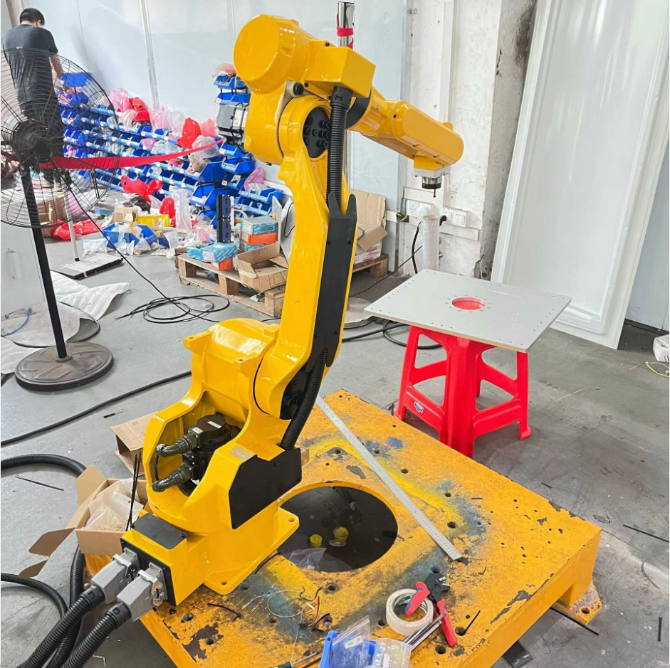 机器人可配备各种专用工具作为末端执行器,例如钻头、焊接设备或喷漆装置,从而执行特定任务。所选工具取决于机器人的用途,如装配、机加工、喷涂等。