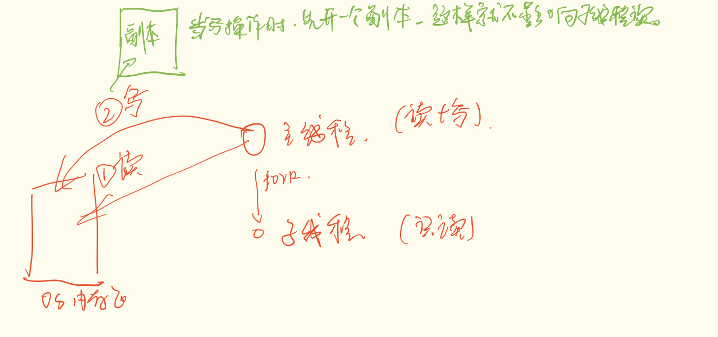 写时复制的意思其实就是主线程在进行写操作的时候,先复制备份一份,在备份的这个文件上去进行写操作,这样子进程读操作就可以保证一直读的是之前的那个旧版本。