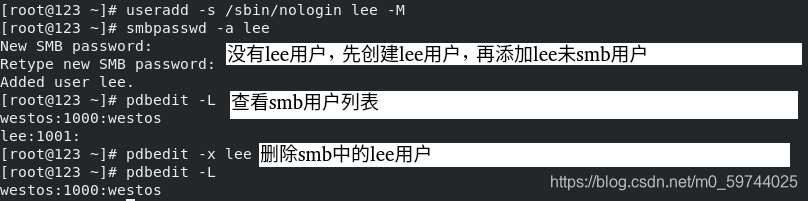 pdbedit -x lee ##删除smblee用户