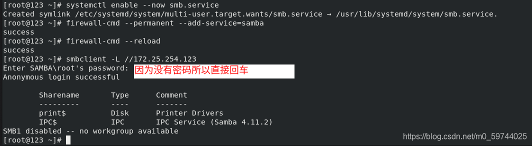 [root@123 ~]# smbclient -L //172.25.254.123