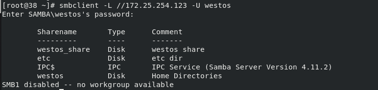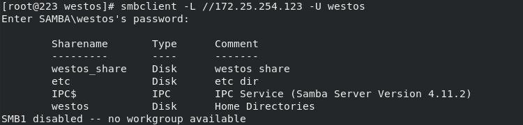 systemctl restart smb.servicesmbclient -L //172.25.254.123 -U westos