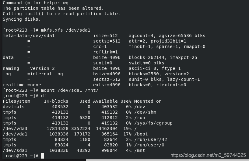mkfs.xfs /dev/sda1
