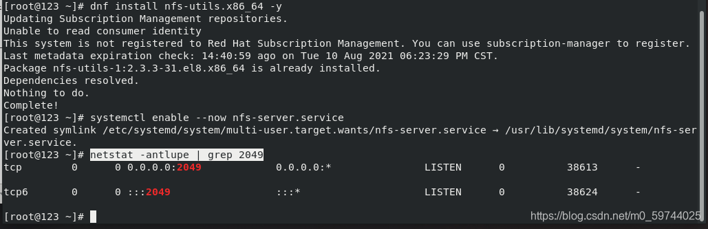 服务器: dnf install nfs-utils.x86_64 -y ##客户端和服务端同一个安装包