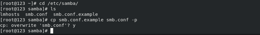cp smb.conf.example smb.conf -p ##重新生成配置文件