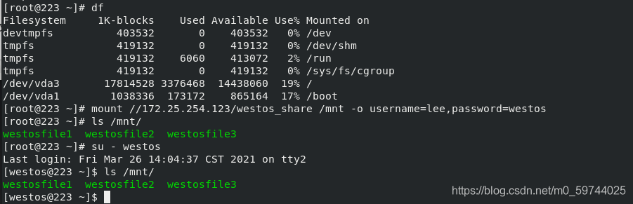 mount 172.25.254.123:/westosdir /mnt/