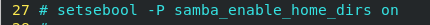 setsebool -P samba_enable_home_dirs on ##调整selinux中的smb波尔指使用户可以访问家目录