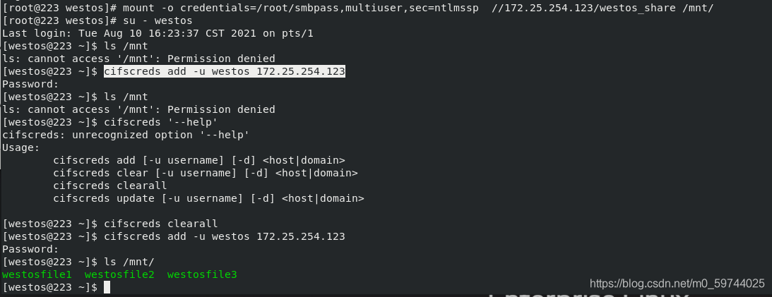 smbclient //172.25.254.123/westos_share -U westos
