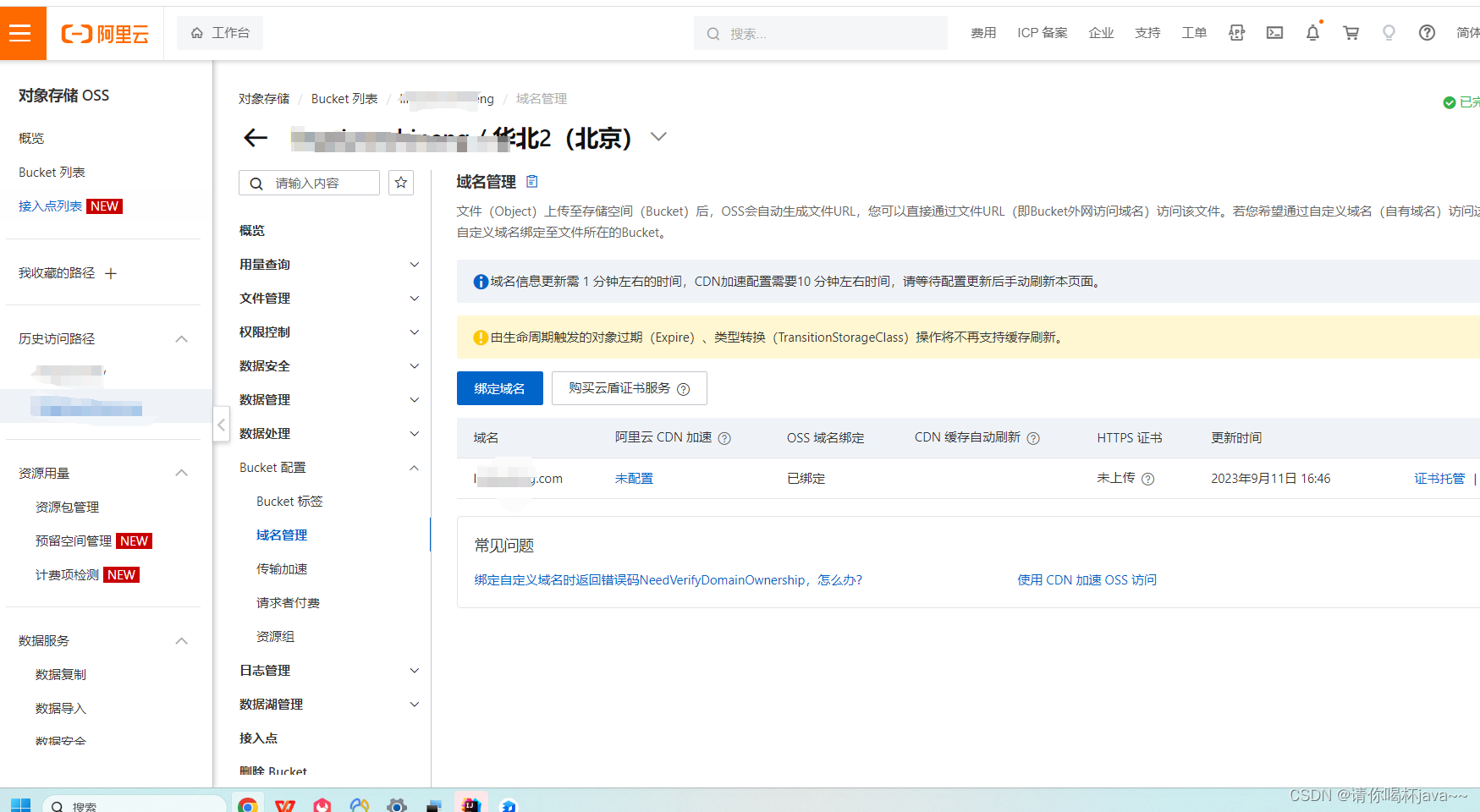 - 先找到阿里云OSS配置桶,选择绑定域名