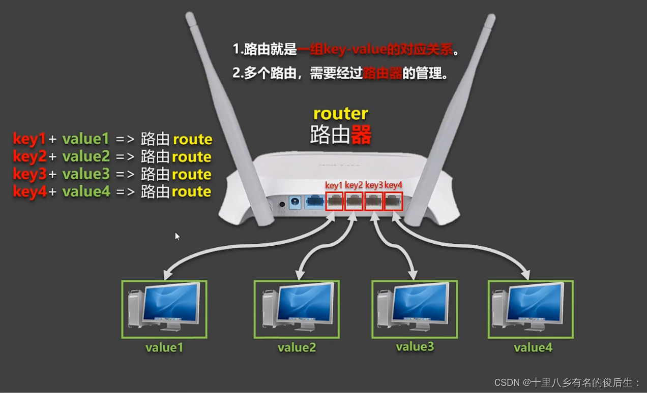 vue-router 1、一个路由(route)就是一组映射关系(key-value)2、key为路径,value可能是function或component3、多个路由需要路由器(router)进行管理传递参数的方式有两种动态路由的方式传递参数(常用params)也就是pathcurrent'用占位符来准备接收参数。此时只能用params形式传递参数因为query形式传递的参数current=1'和路径地址不匹配。query传递参数query会以查询字符串的形式传递。......